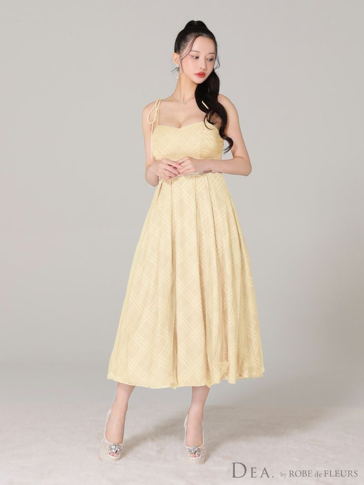 6. [DEA.byROBEdeFLEURS/ディアバイローブドフルール] 高級キャミソールチェック柄ウエストベルトチュールAラインロングドレス