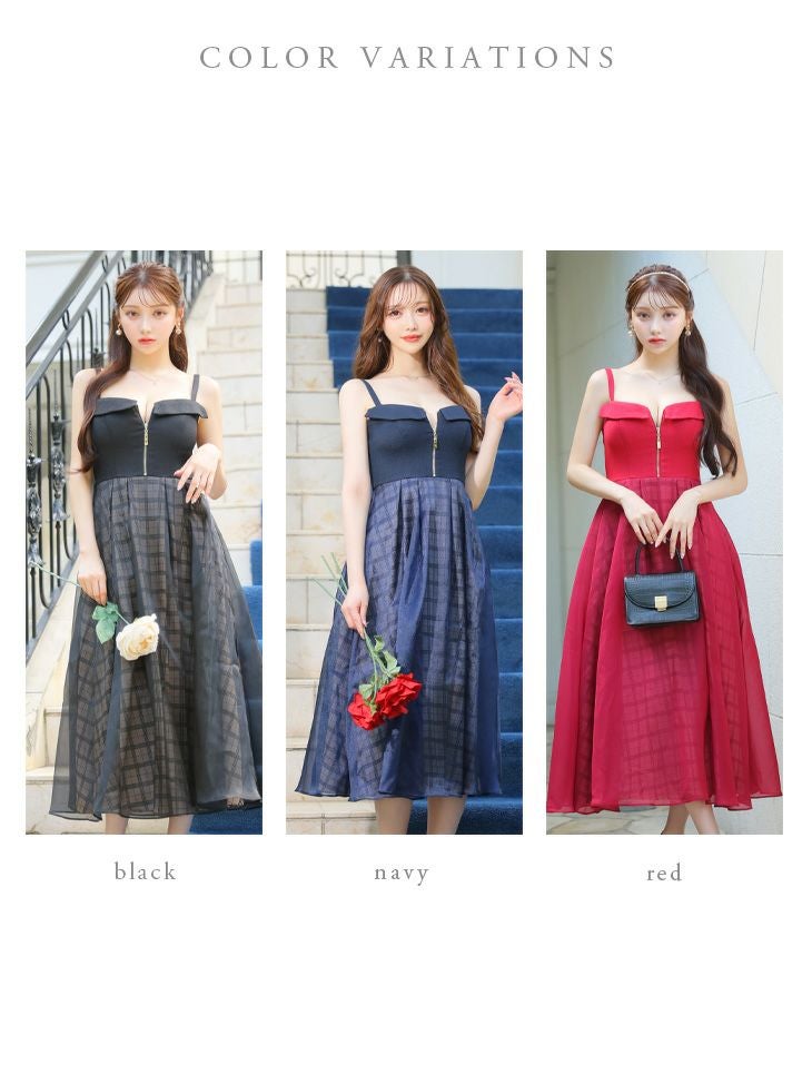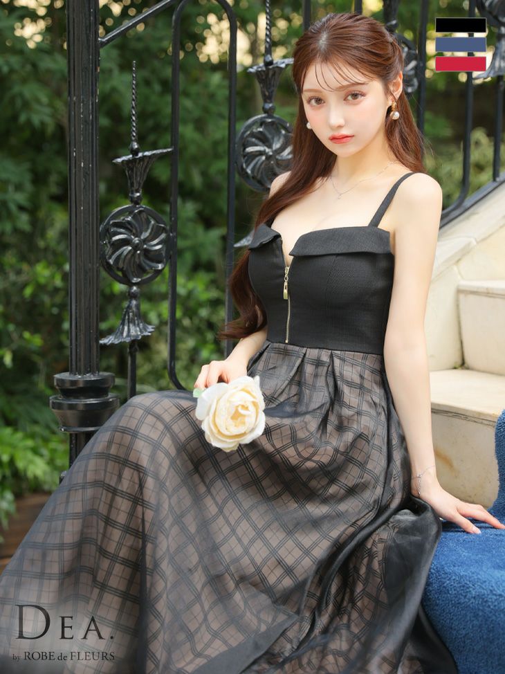 女性らしさをたっぷり引き出す♪ [DEA.byROBEdeFLEURS/ディアバイローブドフルール] 高級キャミソールジップツイード切替チェック柄Aラインロングドレス
