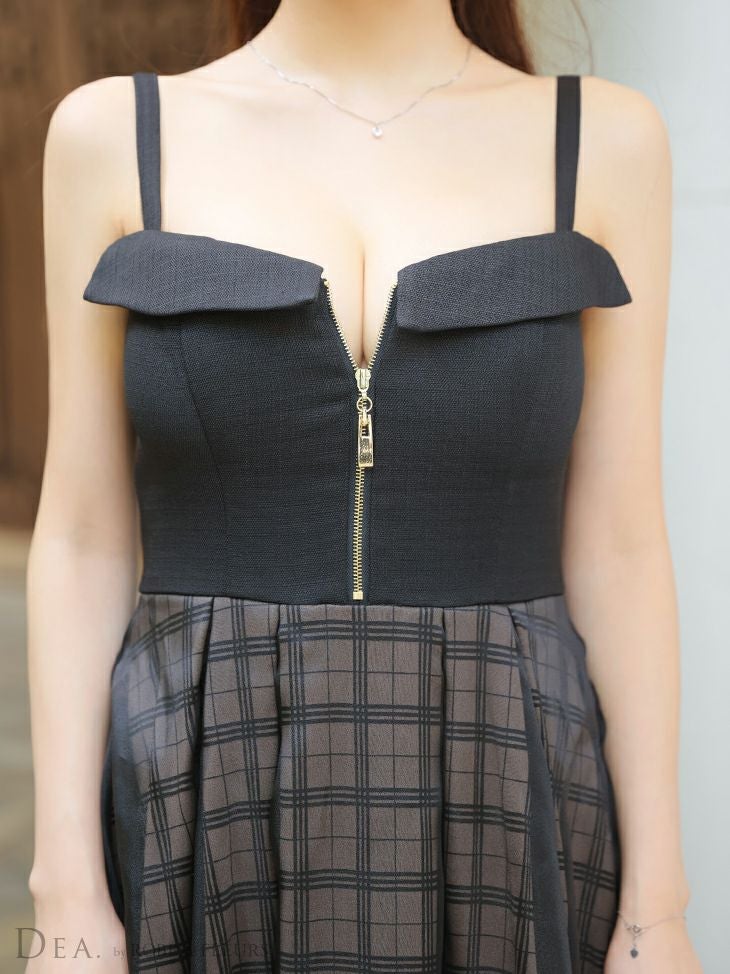 4. [DEA.byROBEdeFLEURS/ディアバイローブドフルール] 高級キャミソールジップツイード切替チェック柄Aラインロングドレス