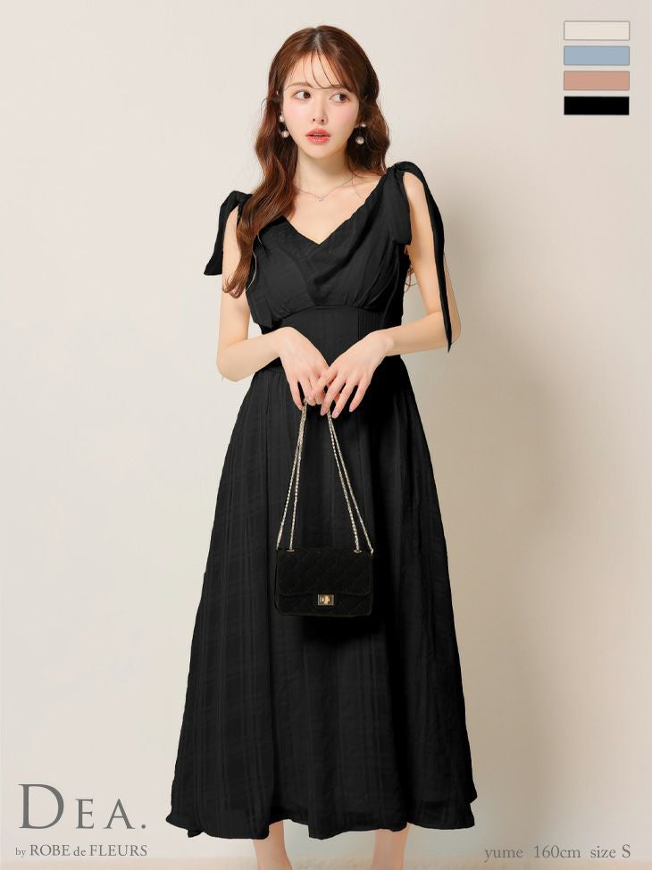 4. [DEA.byROBEdeFLEURS/ディアバイローブドフルール] 高級ノースリーブショルダーリボンチェック柄シフォンAラインロングドレス