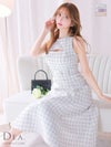 6. SALE [DEA.byROBEdeFLEURS/ディアバイローブドフルール] 高級 ノースリーブ バストカット ウエストベルト チェック柄 ツイード 谷間魅せ Aラインロングドレス