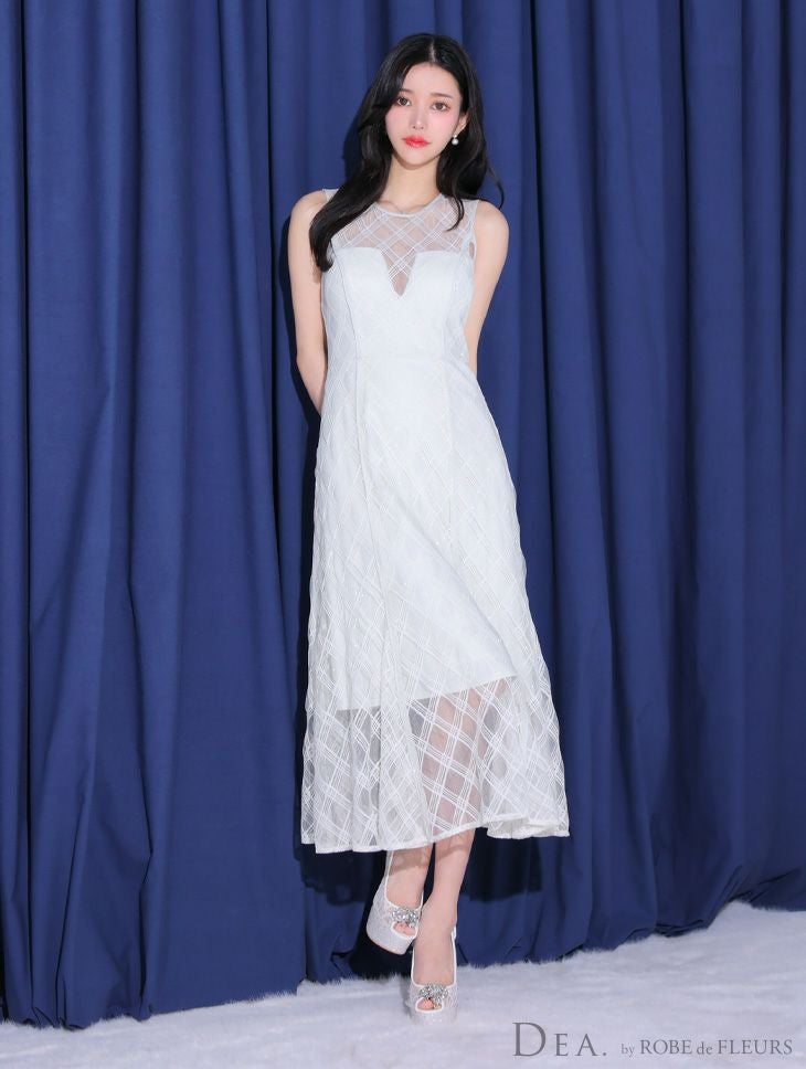 キャバドレス ロングドレス [DEA.byROBEdeFLEURS/ディアバイローブドフルール]  高級サマーノースリーブチェック柄シースルーAラインロングドレス