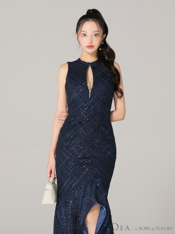 4. [DEA.byROBEdeFLEURS/ディアバイローブドフルール] 高級チェック柄ノースリーブジップマーメイドフリルロングテールドレス