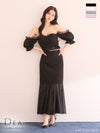 ふんわりと軽やかな印象に☆ [DEA.byROBEdeFLEURS/ディアバイローブドフルール] 高級オフショルダーチェック柄マーメイドフリルセットアップタイトロングタイトドレス