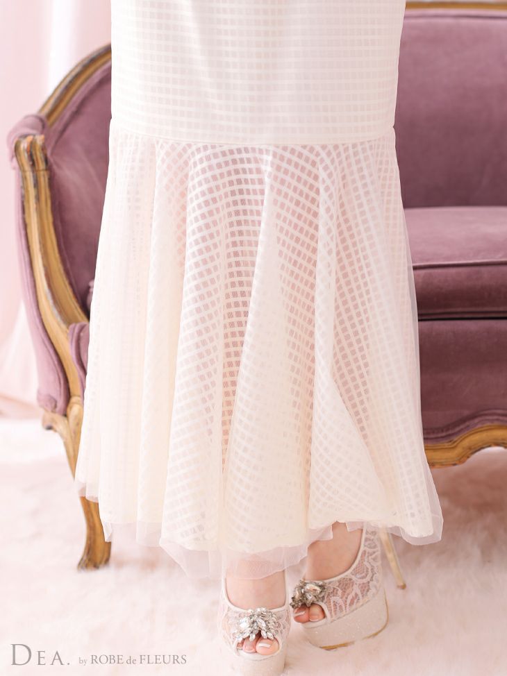 4. [DEA.byROBEdeFLEURS/ディアバイローブドフルール] 高級オフショルダーチェック柄マーメイドフリルセットアップタイトロングタイトドレス