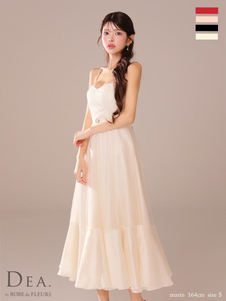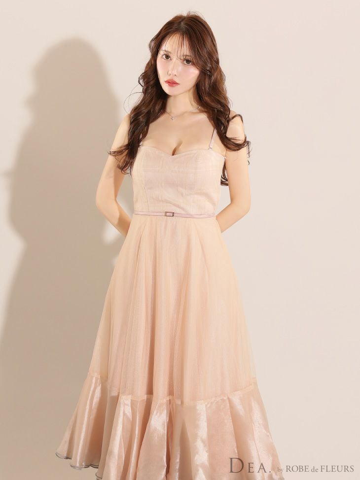動いた時も美しいシルエットに♪ [DEA.byROBEdeFLEURS/ディアバイローブドフルール] 高級キャミソールチェック柄シフォンウエストベルトAラインロングドレス