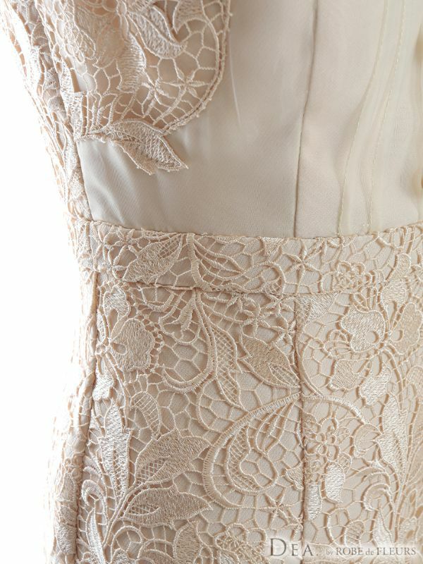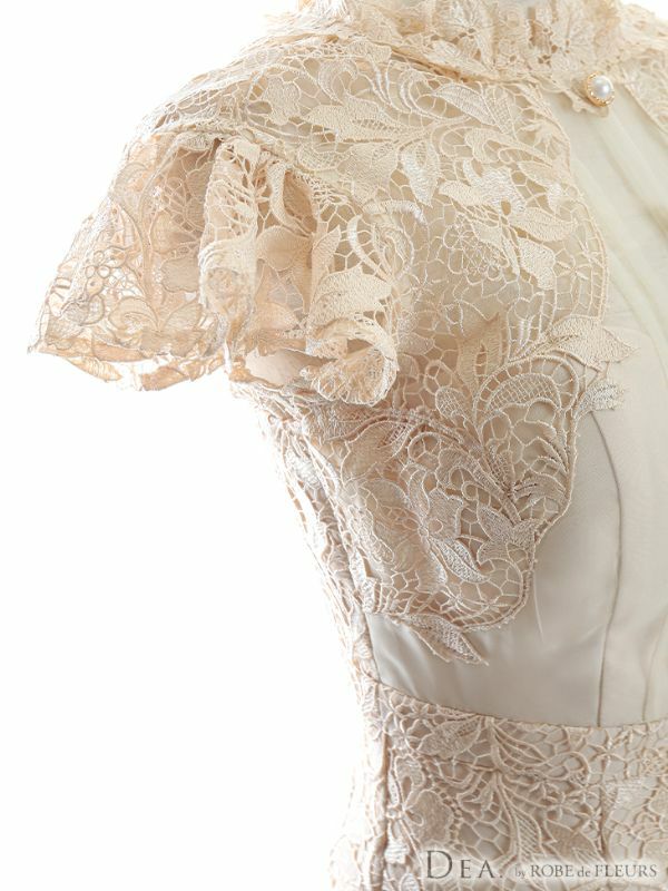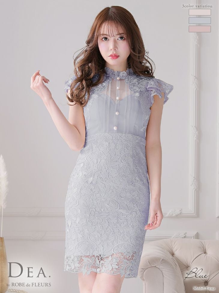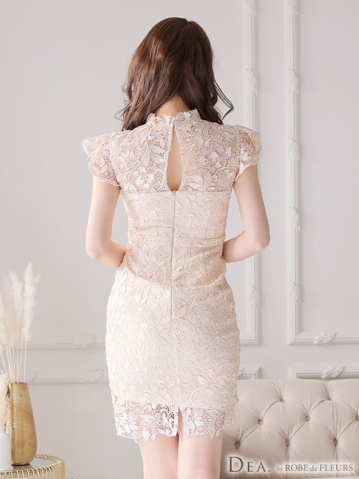 DEA.byROBEdeFLEURS ディアバイローブドフルール 高級ハイネックフリル袖フローラルレースノースリーブタイト膝丈ドレス