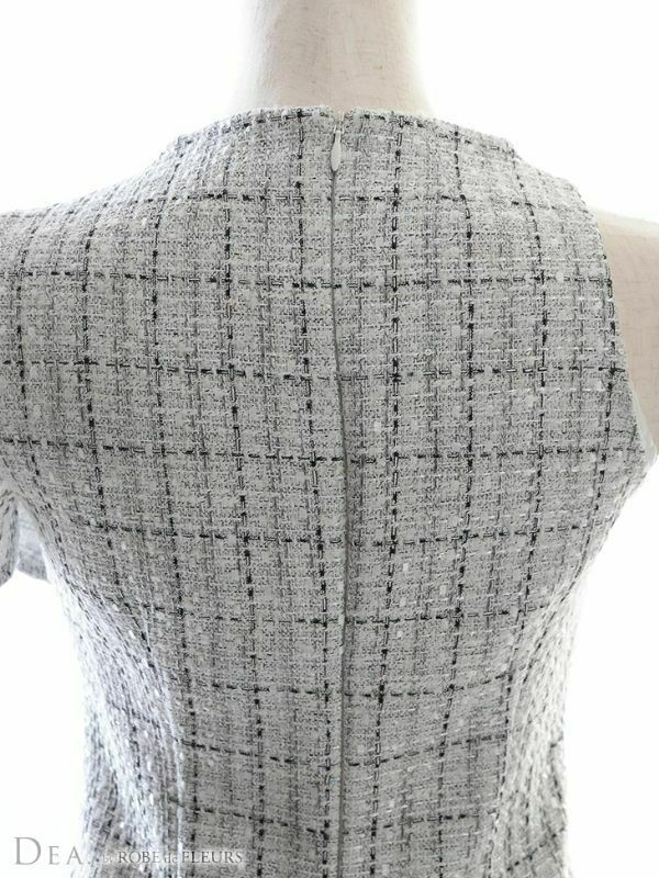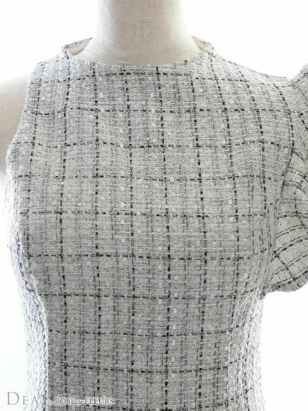高級感のあるツイードが上品に可愛い☆ [DEA.byROBEdeFLEURS/ディアバイローブドフルール] 高級チェック柄ツイード×アシンメトリーノースリーブタイトミニワンピースドレス