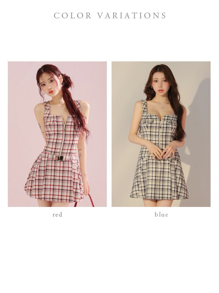 トレンド感溢れるガーリードレス☆ [DEA.byROBEdeFLEURS/ディアバイローブドフルール] 高級チェック柄ジップウエストベルトノースリーブフレアミニドレス