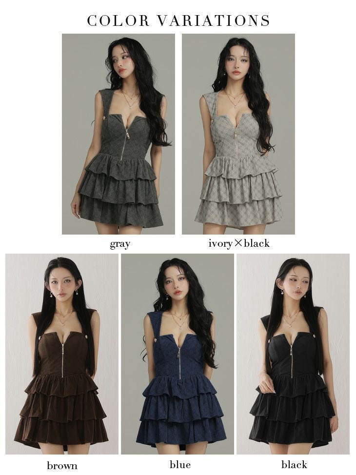 4. ジップデザイン高級ミニドレス
