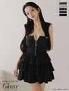 4. [ROBEdeFLEURSGlossy/ローブドフルールグロッシー] 高級 ブランド Aラインミニドレス ノースリーブ 谷間 チェック柄 ジップ 2way ベアデザイン フーディー ティアードフリル