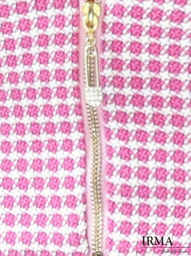 4. [IRMA/イルマ] 高級フロントジッパーチェック柄ノースリーブタイトミニドレス
