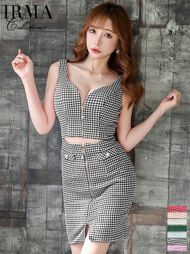 sexyな肌魅せジップドレス☆ [IRMA/イルマ] 高級フロントジッパーチェック柄ノースリーブタイトミニドレス