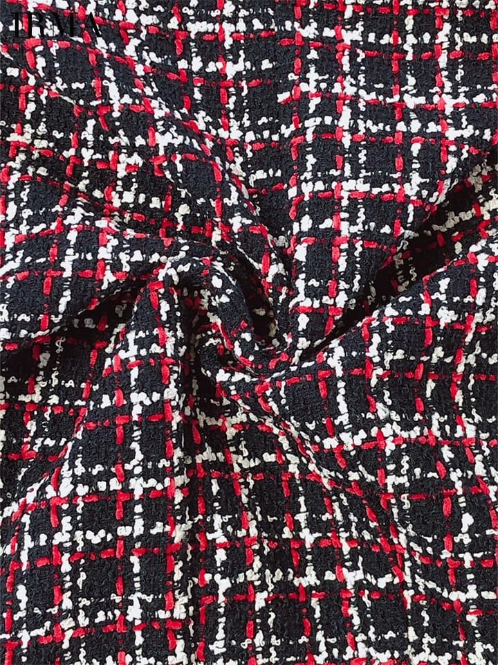 5. [IRMA/イルマ] 高級ツイードチェック柄ウエストカット袖ありタイトミニドレス