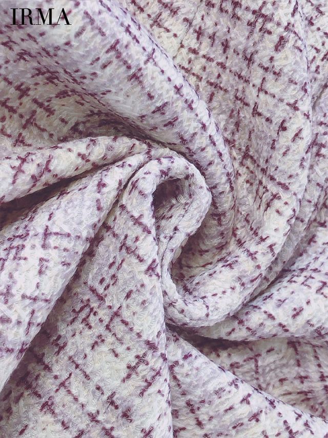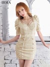 5. [IRMA/イルマ] 高級チェック柄バストクロスパールボタンツイードニットくびれ半袖タイトミニドレス