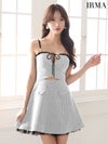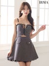 女の子らしさ溢れるミニドレス☆ [IRMA/イルマ] 高級 チェック柄 ツイード キャミソール バストカット フロントリボン ボタン チュール 谷間魅せ フレアミニドレス