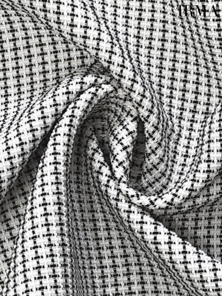 4. [IRMA/イルマ] 高級 チェック柄 ツイード キャミソール バストカット フロントリボン ボタン チュール 谷間魅せ フレアミニドレス