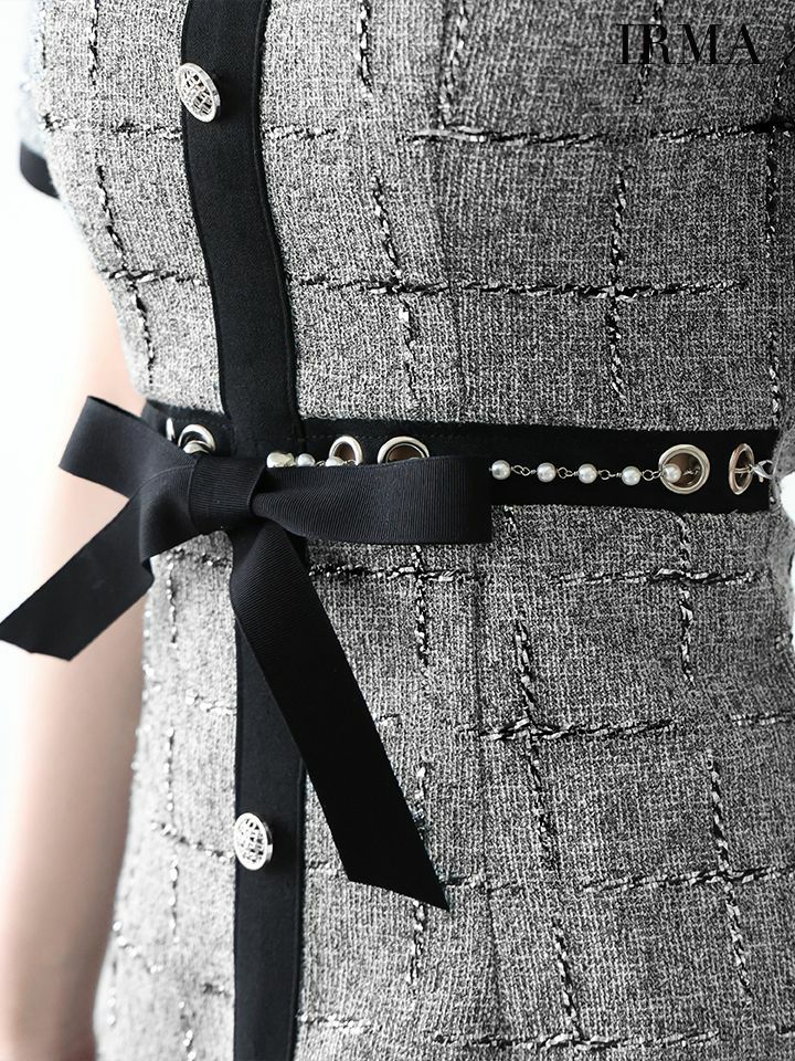 同伴やアフターにもおすすめ♡ [IRMA/イルマ] 高級 ブランド ワンピース Aラインミニドレス 半袖 ウエストリボン付き チェック柄 ツイード 大人