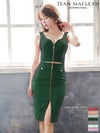ジップデザインで大人セクシー☆ [JEANMACLEAN/ジャンマクレーン] 高級チェック柄フロントジップデザインノースリーブタイト膝丈ドレス