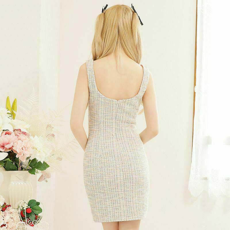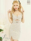 CUTEなツイード素材がフェミニンな印象をプラス☆ [PURESS/ピュアレス] 高級ビジューチェーンベルトウエストカットチェック柄ノースリーブタイトミニドレス