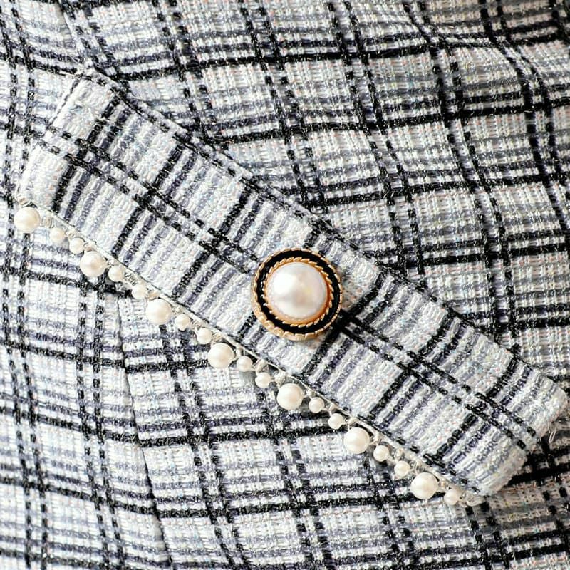 高級パールキャミソールフロントボタンツイードチェック柄タイトミニドレス