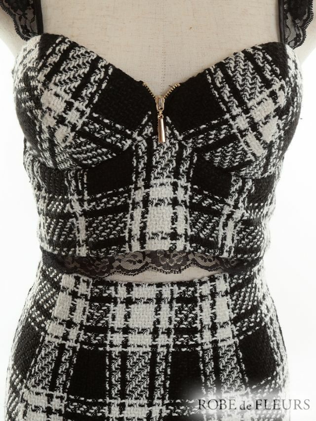 ROBEdeFLEURS ローブドフルール 高級チェック柄ツイードセットアップノースリーブマーメイドロングドレス