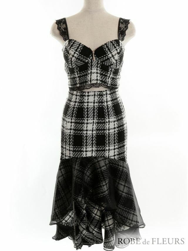 3. [ROBEdeFLEURS/ローブドフルール] 高級チェック柄ツイードセットアップノースリーブマーメイドロングドレス