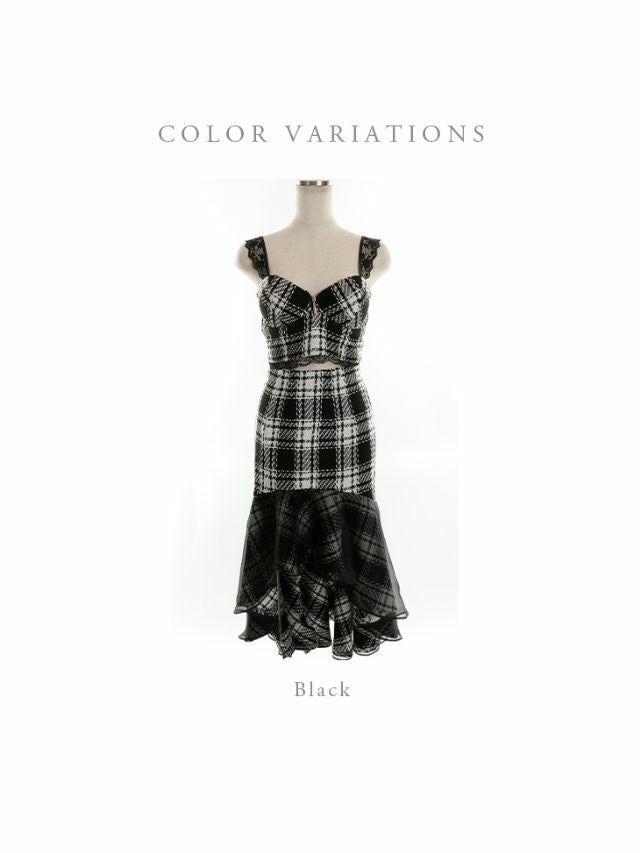 上品見え抜群のフェミニンドレス☆ [ROBEdeFLEURS/ローブドフルール] 高級チェック柄ツイードセットアップノースリーブマーメイドロングドレス