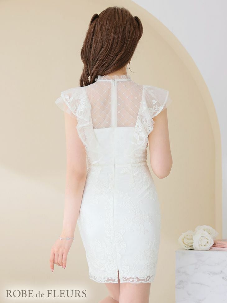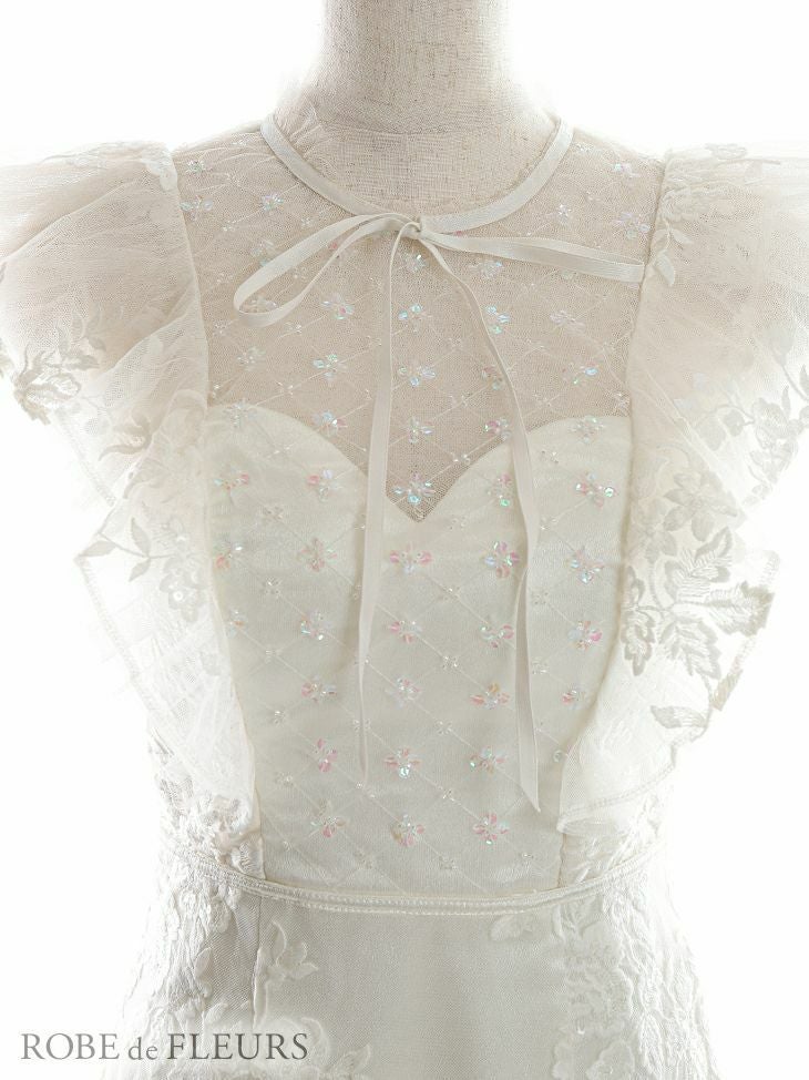 4. [ROBEdeFLEURS/ローブドフルール] 高級刺繍レース×フリル袖ブロックチェック柄ミニドレス
