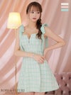 キャバドレス ミニドレス [ROBEdeFLEURS/ローブドフルール] 高級ノースリーブ肩リボンワンピースチェック柄ジップフレアミニドレス