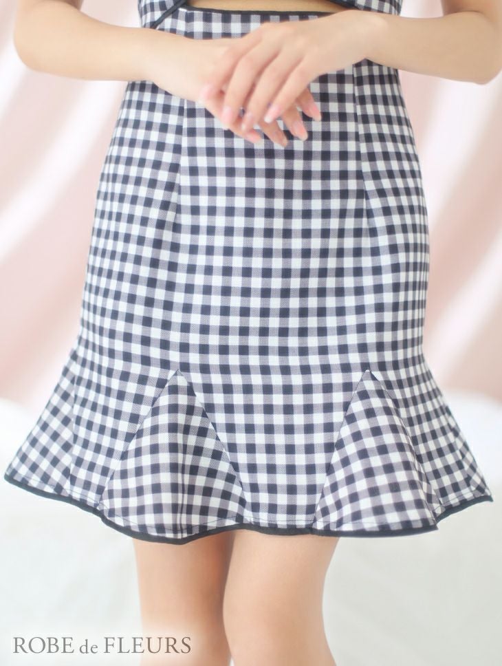 キャバドレス ミニドレス [ROBEdeFLEURS/ローブドフルール] 高級ノースリーブギンガムチェック柄ウエストカットスプリングツイード襟デザインフレアミニドレス