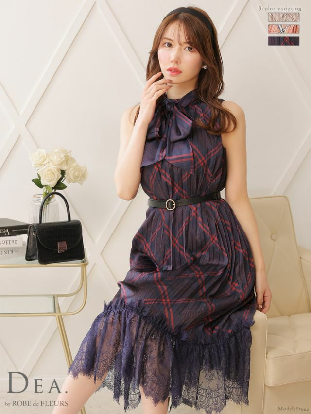 他の画像を見る チェック柄が目を惹く上品フェミニンドレス☆ [DEA.byROBEdeFLEURS/ディアバイローブドフルール] 高級チェック柄ネックリボンプリーツレースウエストベルトワンピースノースリーブ膝丈ドレス ¥ 29,480 税込 在庫切れ お気に入りに追加