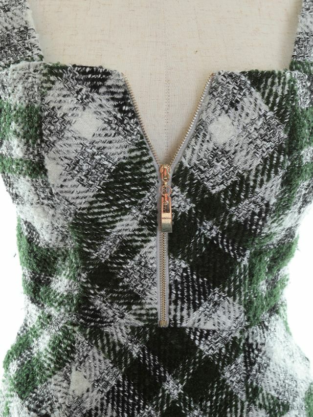他の画像を見る 同伴にもおすすめ☆ [DEA.byROBEdeFLEURS/ディアバイローブドフルール] 高級チェック柄ツイードフロントジップノースリーブタイトミニドレス ¥ 29,480 税込 在庫切れ お気に入りに追加