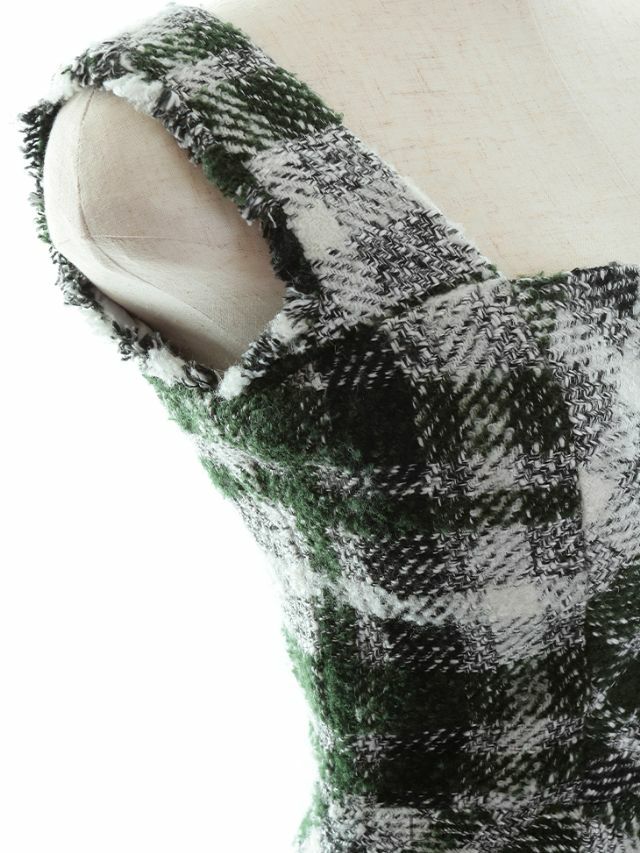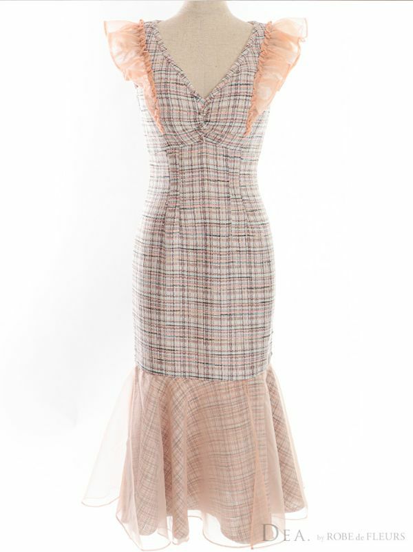 他の画像を見る 女性らしい曲線美を演出☆ [DEA.byROBEdeFLEURS/ディアバイローブドフルール] 高級フリル袖チェック柄ツイードマーメイドノースリーブタイト膝丈ワンピースドレス ¥ 27,280 税込 在庫切れ お気に入りに追加
