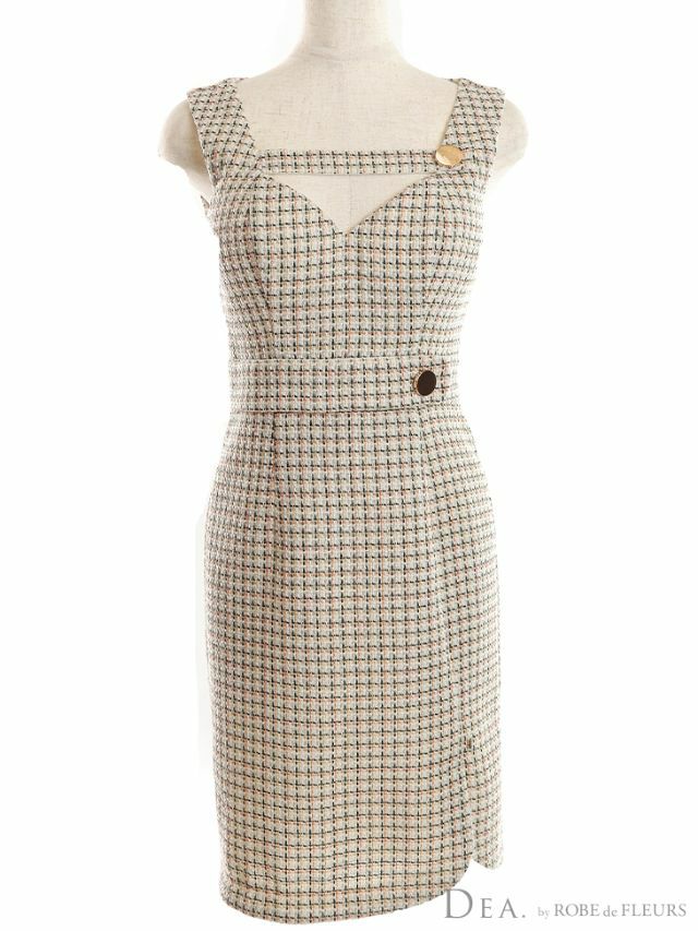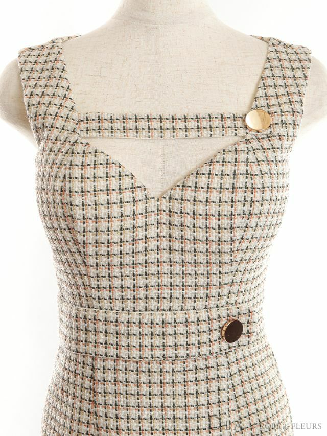他の画像を見る 上品エレガントな雰囲気をメイク☆ [DEA.byROBEdeFLEURS/ディアバイローブドフルール] 高級 チェック柄 ツイード バストカット ゴールドボタン ウエスト切替 ノースリーブ 谷間魅せ タイトミニドレス ¥ 29,480 税込 在庫切れ お気に入りに追加