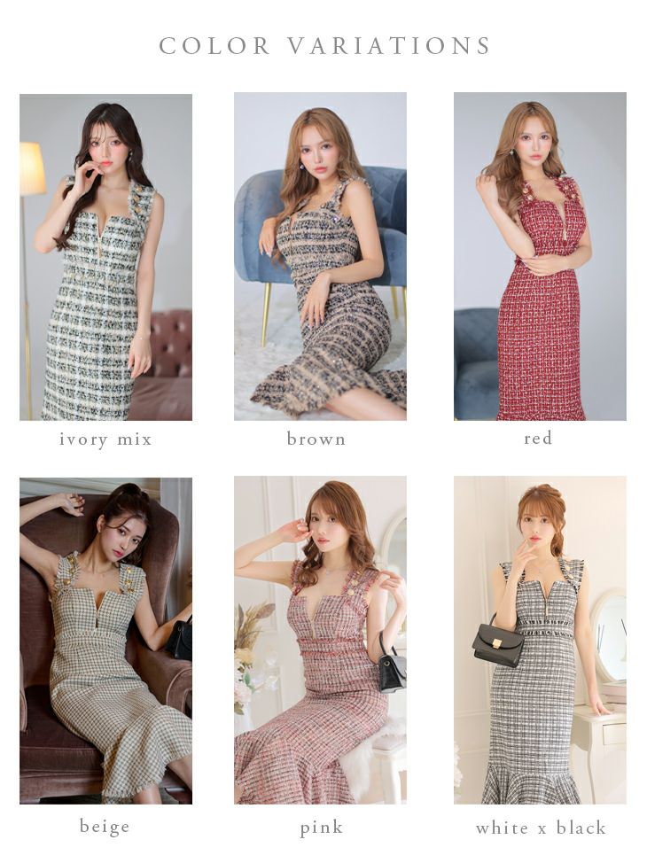他の画像を見る 上品見え抜群のフェミニンドレス☆ [ROBEdeFLEURS/ローブドフルール] 高級チェック柄ツイードセットアップノースリーブマーメイドロングドレス ¥ 26,180 税込 在庫切れ お気に入りに追加