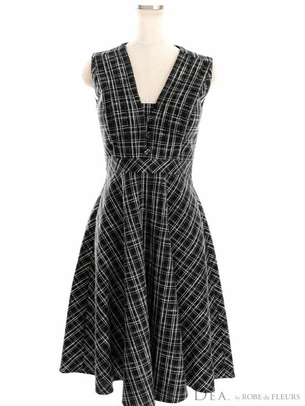 他の画像を見る ドーリーな雰囲気漂う☆ [DEA.byROBEdeFLEURS/ディアバイローブドフルール] 高級ノースリーブVネックチェック柄ツイードフレア膝丈ワンピースドレス ¥ 28,380 税込 在庫切れ お気に入りに追加