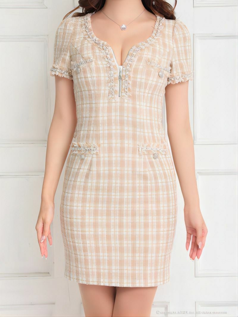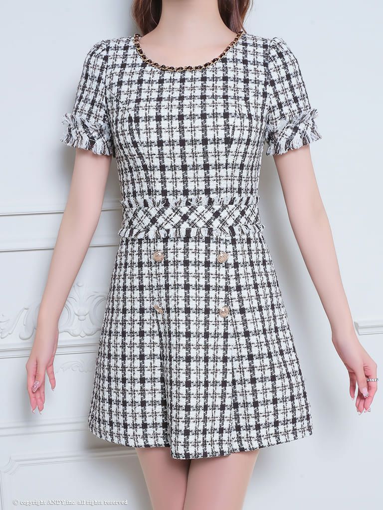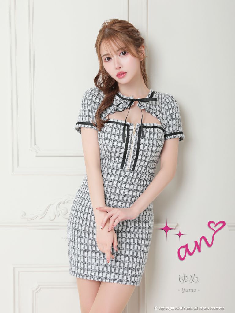 他の画像を見る チェック柄のツイードが可愛い☆ [an/アン] 高級ツイード チェック柄 ハートカット バストジップ フリンジ 半袖 タイトミニドレス ¥ 27,500 税込 在庫切れ お気に入りに追加