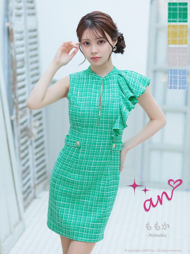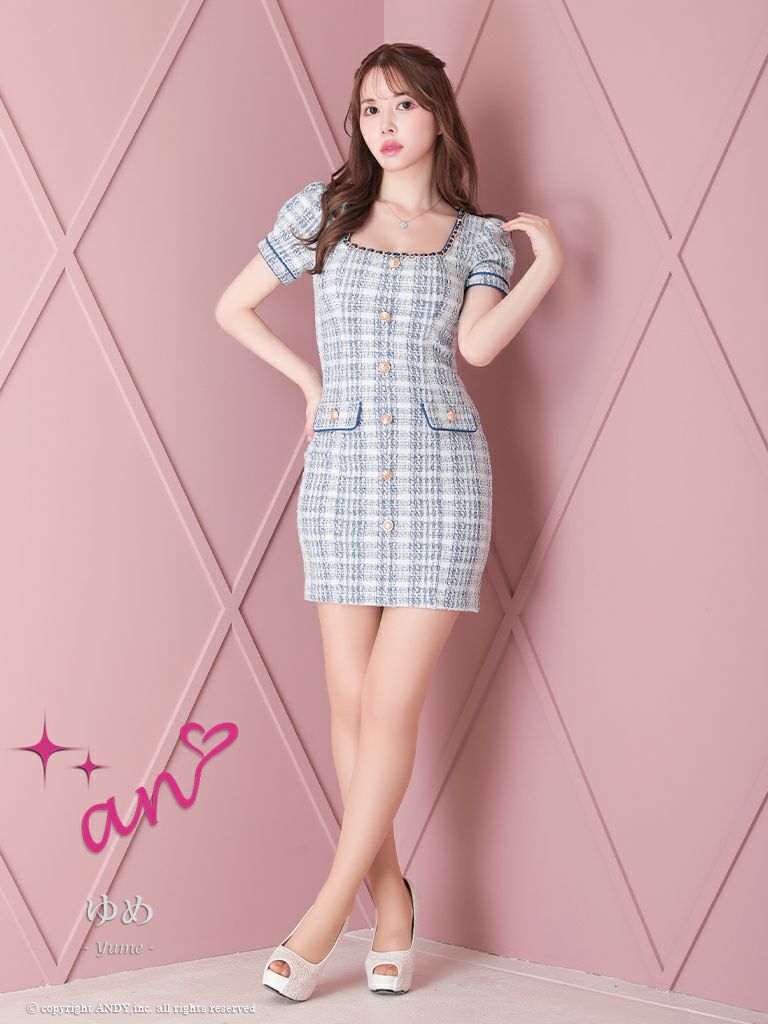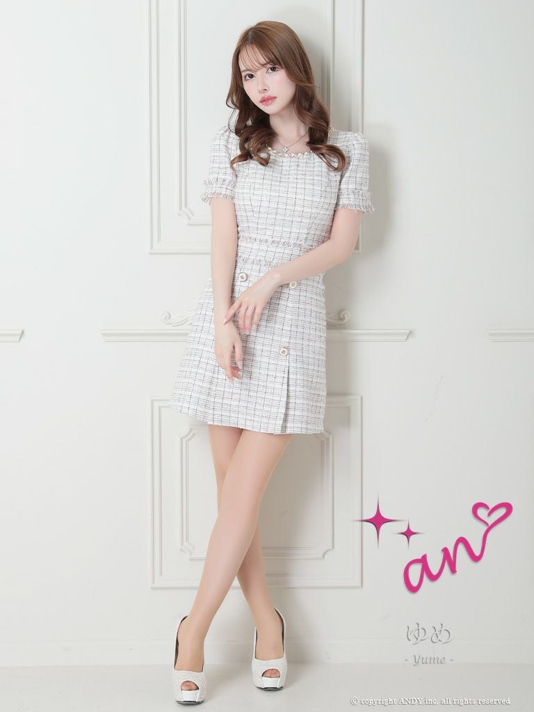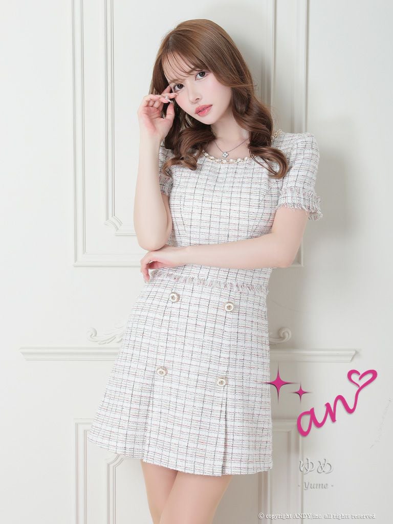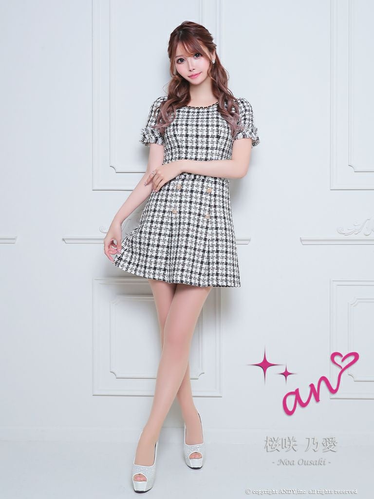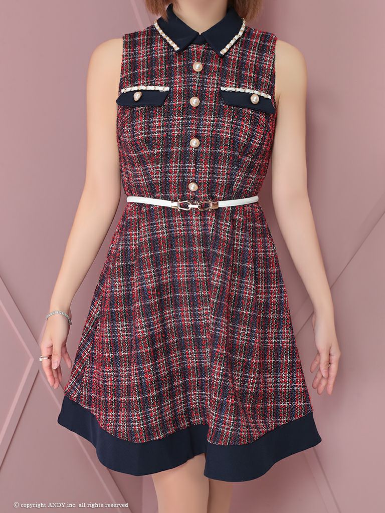 他の画像を見る 同伴にもおすすめ◎クラシカルワンピ♪ [an/アン] 高級 ノースリーブ 襟付き パールボタン ウエストベルト ツイード チェック柄 フレアミニドレス ¥ 27,500 税込 在庫切れ お気に入りに追加