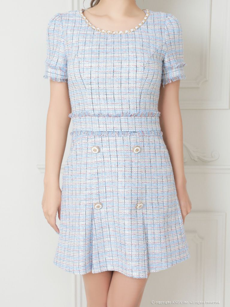 他の画像を見る チェック柄のツイードが可愛い一着☆ [an/アン] 高級 テーラード 襟付き ノースリーブ ツイード チェック柄 プリーツ セットアップ ワンピース フレアミニドレス ¥ 28,600 税込 在庫切れ お気に入りに追加