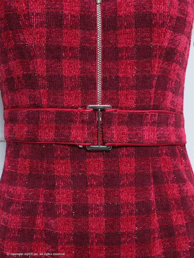 他の画像を見る フロントジップで大人sexyスタイル☆ [an/アン] 高級 襟付き フロントジップ チェック柄 ツイード チェーンベルト サイドリボン ノースリーブ タイトミニドレス ¥ 27,500 税込 在庫切れ お気に入りに追加