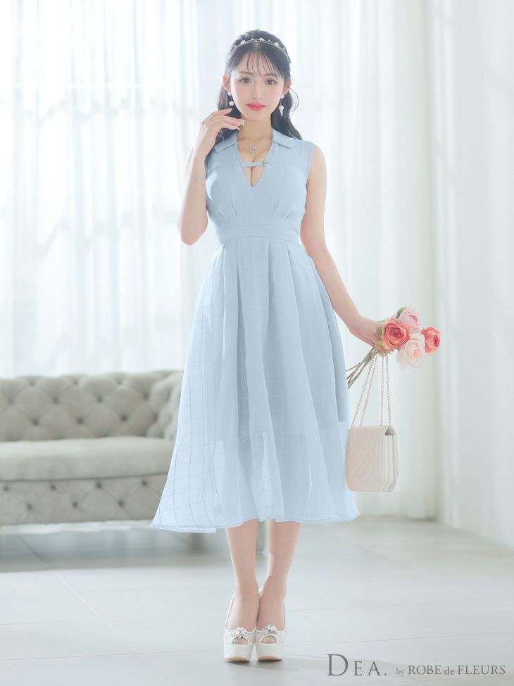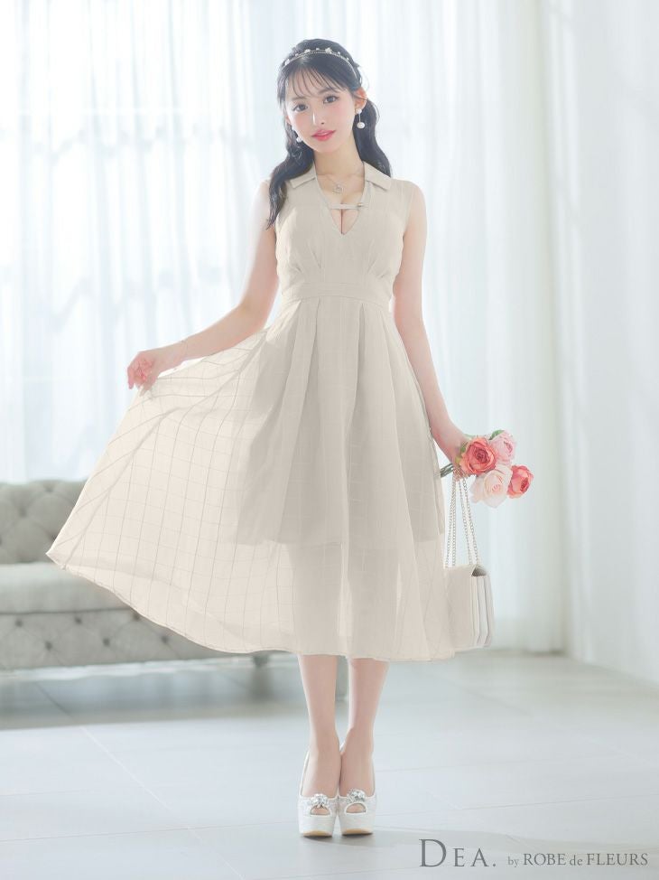 他の画像を見る 上品な襟付きデザイン☆ [DEA.byROBEdeFLEURS/ディアバイローブドフルール] 高級 ノースリーブ 襟付き バストカット チェック柄 谷間魅せ Aラインロングドレス ¥ 28,380 税込 在庫切れ お気に入りに追加