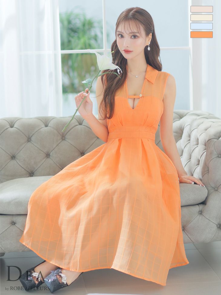 他の画像を見る シアー生地からヘルシーな肌見せ☆ [DEA.byROBEdeFLEURS/ディアバイローブドフルール] 高級 ノースリーブ 襟付き バストカット チェック柄 谷間魅せ Aラインロングドレス ¥ 28,380 税込 在庫切れ お気に入りに追加