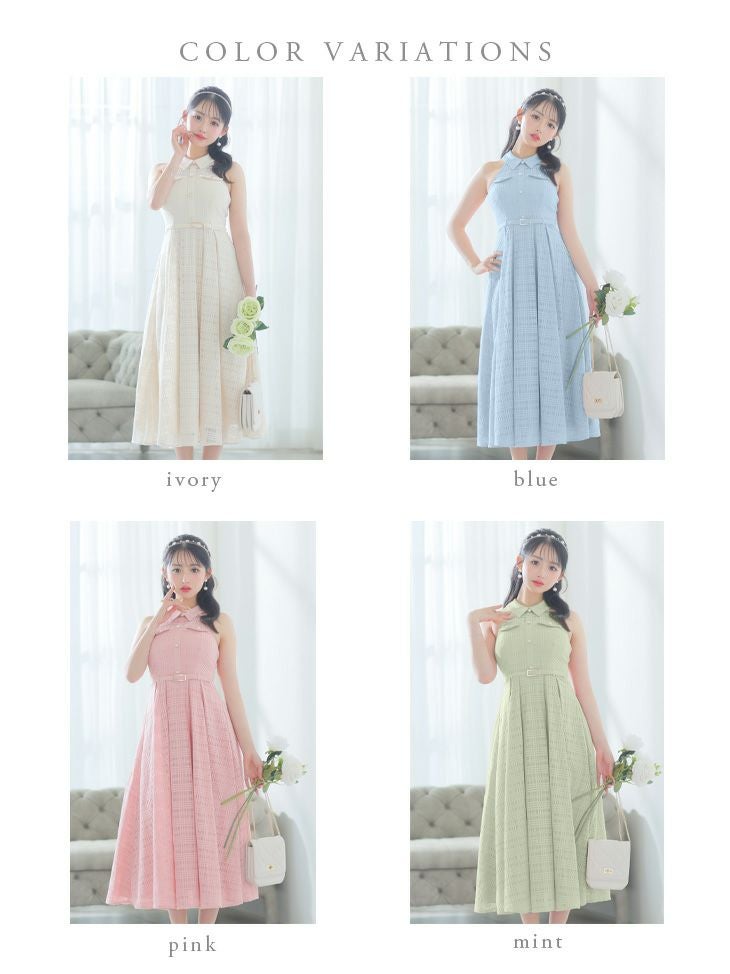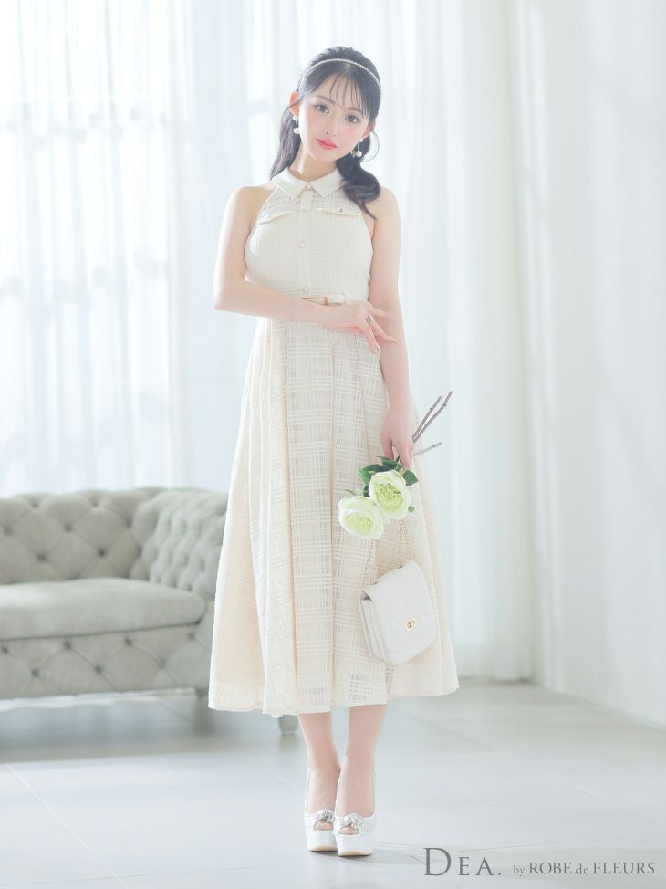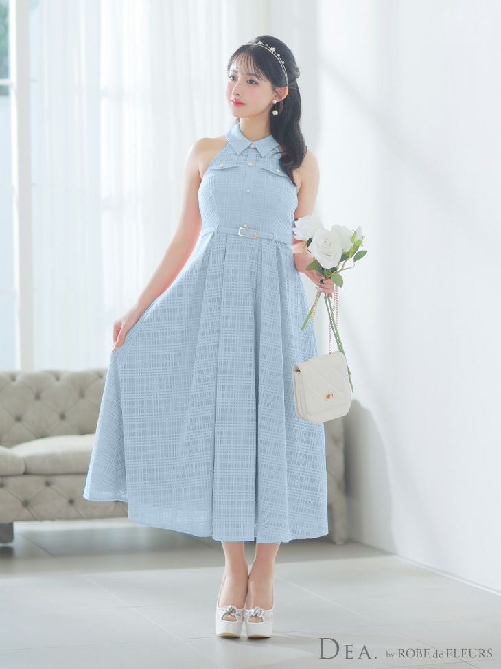 他の画像を見る 普段使いもできちゃう☆ [DEA.byROBEdeFLEURS/ディアバイローブドフルール] 高級 襟付き ホルターネック ウエストベルト チェック柄 シースルー Aラインロングドレス ¥ 30,580 税込 在庫切れ お気に入りに追加