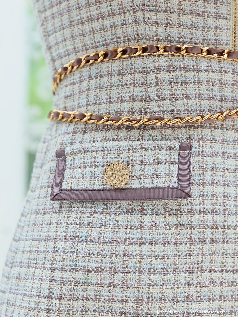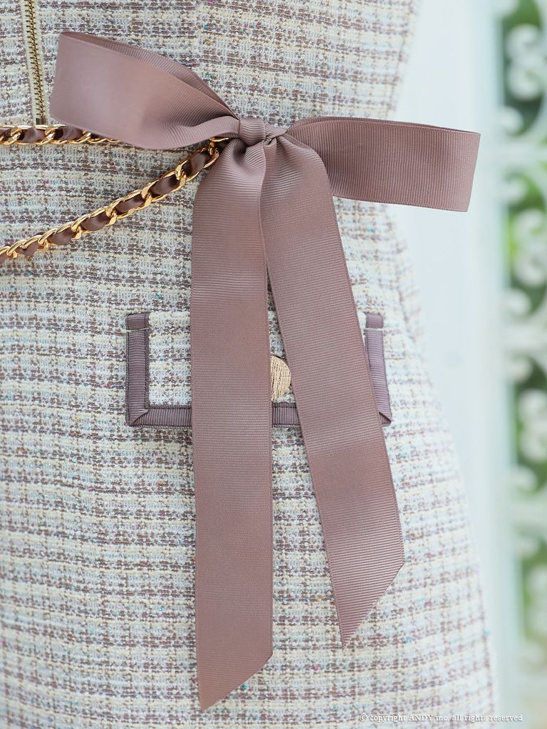 他の画像を見る リボンとチェーンベルトが可愛さUP☆ [an/アン] 高級 襟付き フロントジップ チェック柄 ツイード チェーンベルト サイドリボン ノースリーブ タイトミニドレス ¥ 27,500 税込 在庫切れ お気に入りに追加