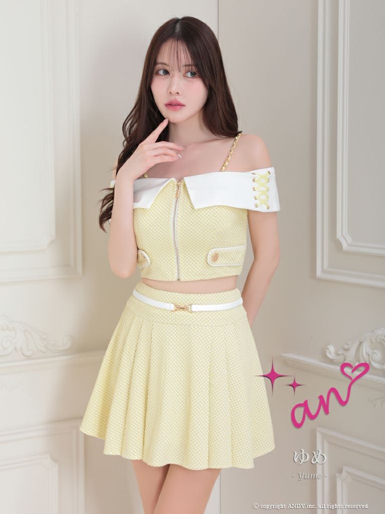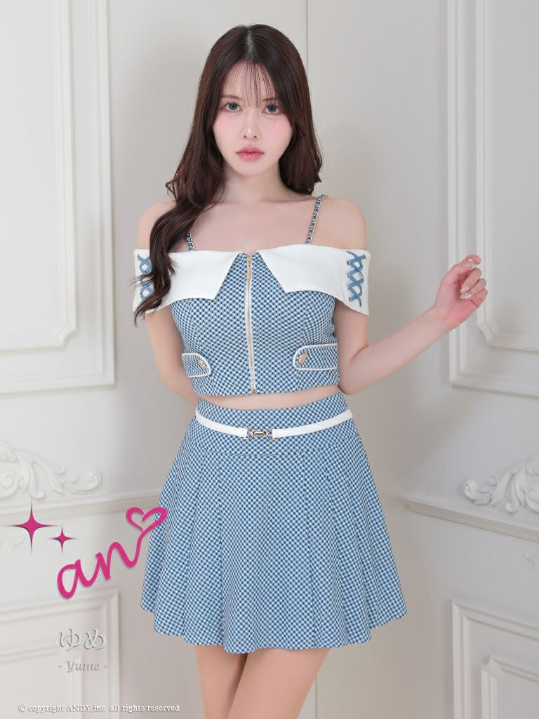 他の画像を見る 爽やかで清楚な雰囲気に♪ [an/アン] 高級キャミソール オフショルダー フロントジップ ウエストベルト プリーツ セットアップ チェック柄 フレアミニドレス ¥ 29,700 税込 在庫切れ お気に入りに追加