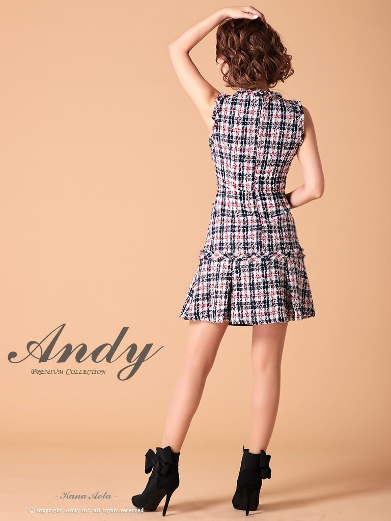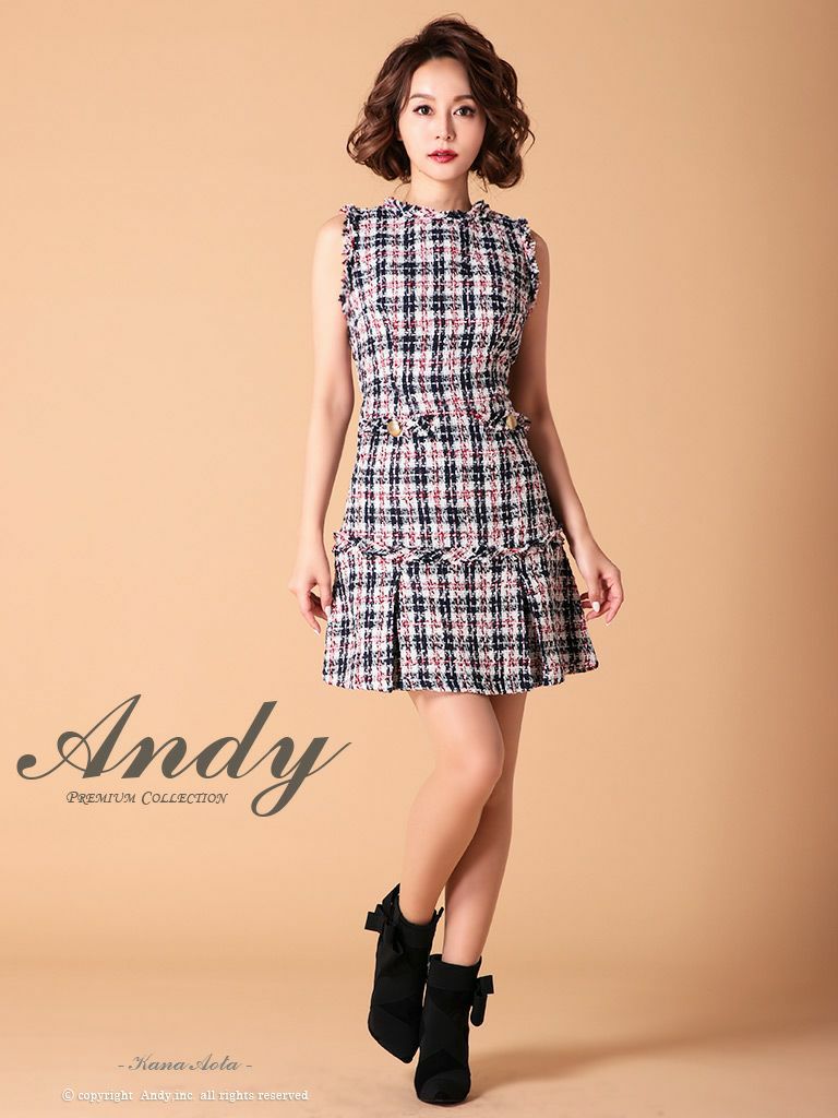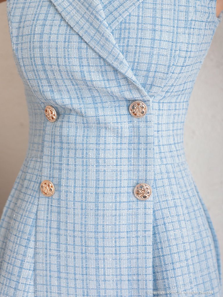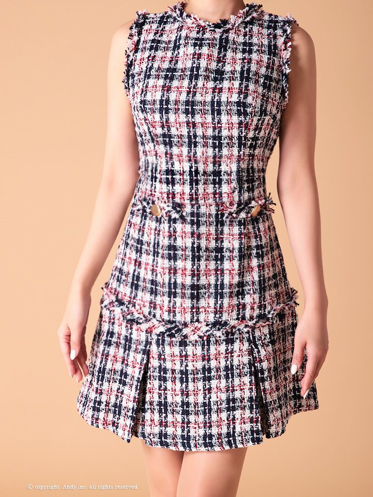他の画像を見る 金色のウエストボタンとツイードデザインが大人お洒落☆ [Andy/アンディ] 高級ブランドノースリーブツイードチェック柄フレアミニドレス ¥ 26,400 税込 在庫切れ お気に入りに追加