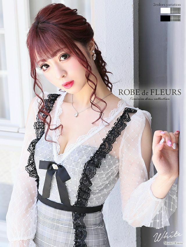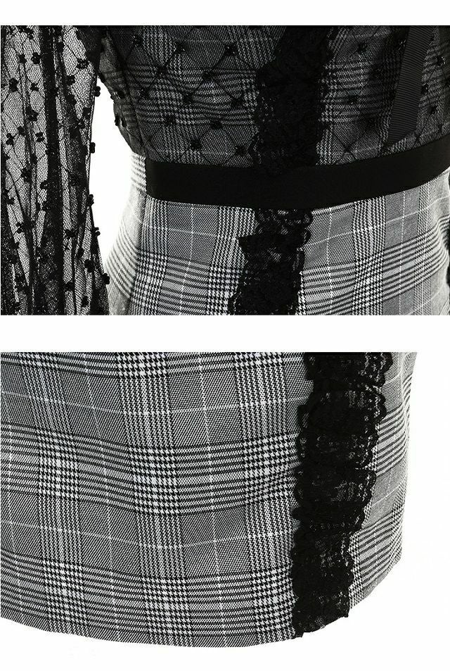 他の画像を見る 透け袖とチェック柄デザインが大人可愛い! [ROBEdeFLEURS/ローブドフルール] 高級グレンチェック柄×フリルレースタイトミニドレス ¥ 25,080 税込 在庫切れ お気に入りに追加