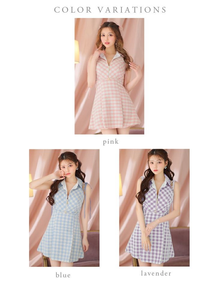他の画像を見る パステルカラーがCute☆ [ROBEdeFLEURS/ローブドフルール] 高級ノースリーブ肩リボンワンピースチェック柄ジップフレアミニドレス ¥ 28,380 税込 在庫切れ お気に入りに追加