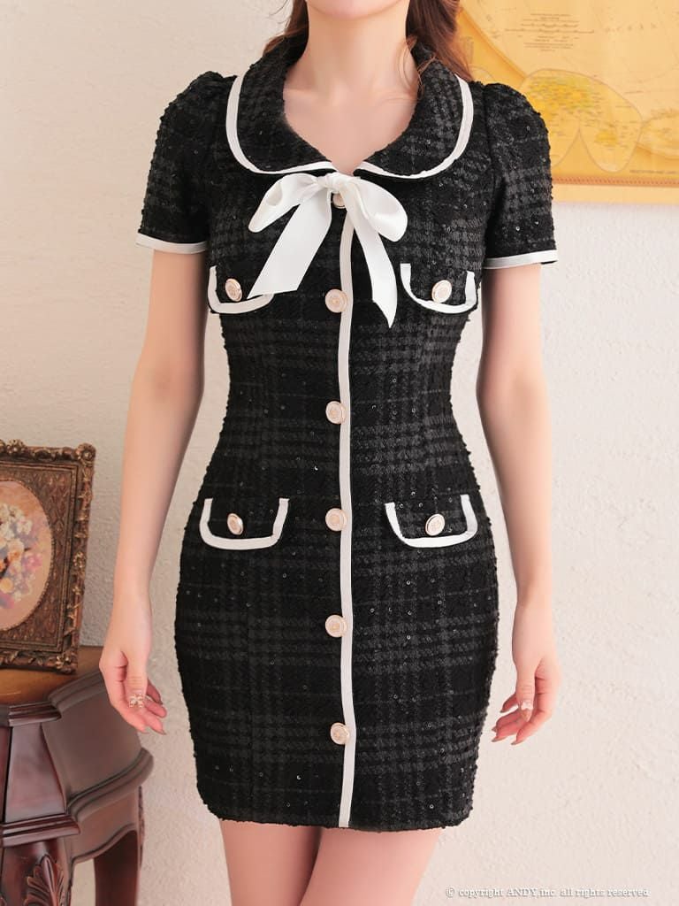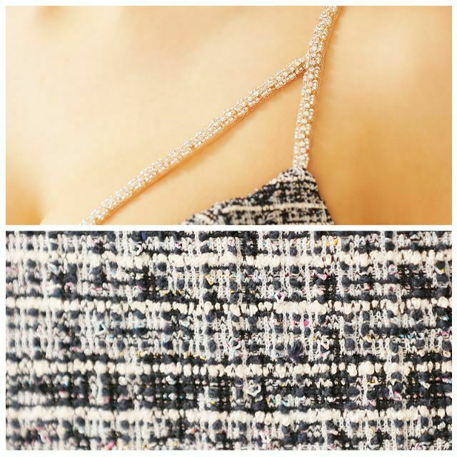 他の画像を見る 首元ビジューが大人エレガントにさせる☆ [Angel-R/エンジェルアール] 高級 スパンコール ビジュー 編み上げ ツイード ホルターネック チェック柄 ウエストカット バストカット 谷間魅せ フレアミニドレス ¥ 30,580 税込 在庫切れ お気に入りに追加